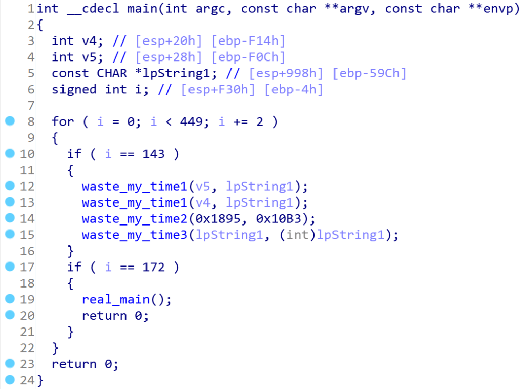 The waste_my_time functions (naming is mine) were designed to be useless, yet fake that something normal is happening to lure tools that use static analysis into thinking that this is a legit program.