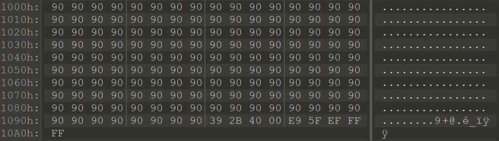 Plenty of NOPs as you would see for padding, then 8 bytes and 0xFF. We’ll get back to that later.