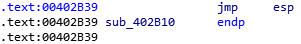 That means when copy_to_stack finishes, EBP becomes 90909090, and the flow continues at 402B39. And what do we find at this address, which is still located in [ID].exe’s code?