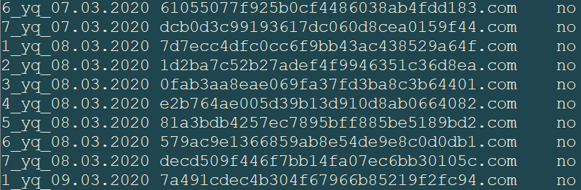The decrypted mask is %d_yq_%02u.%02u.%02u. It is populated with the number of attempts to reach a server and the current date. The result is hashed using MD5, and appended with “.com”.