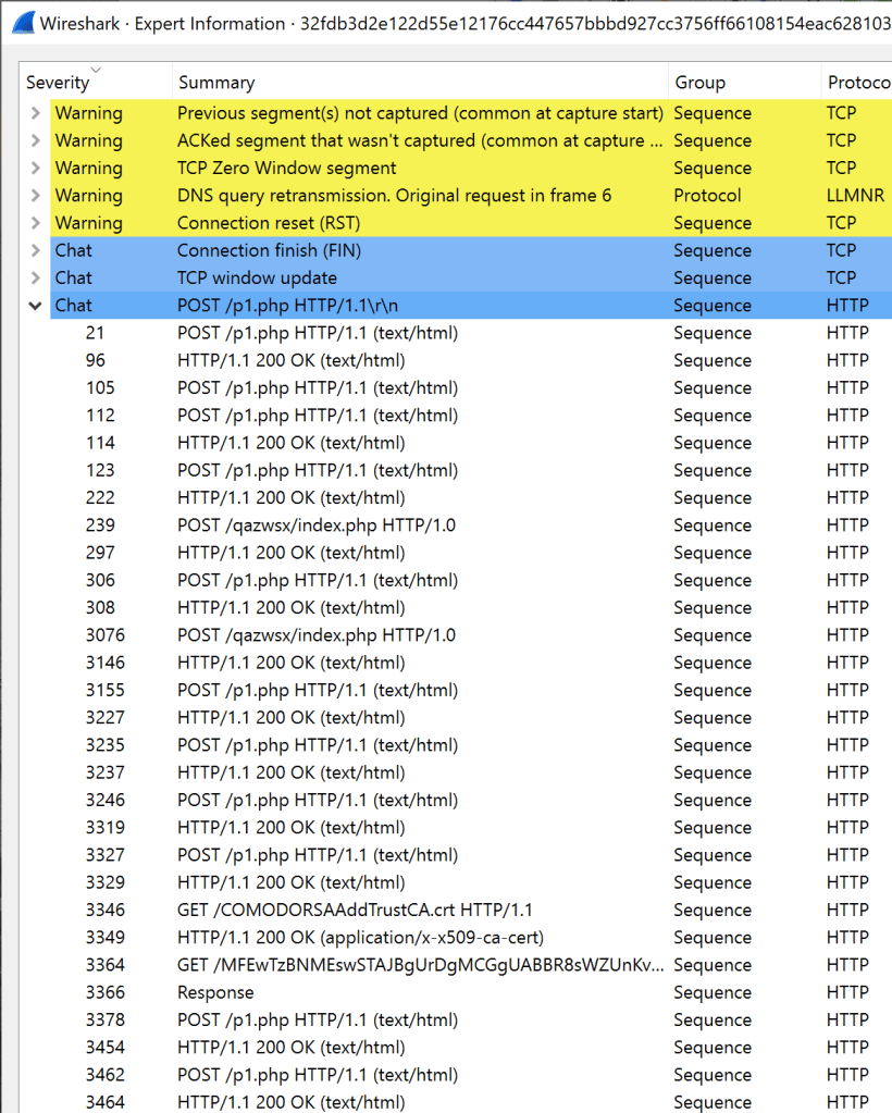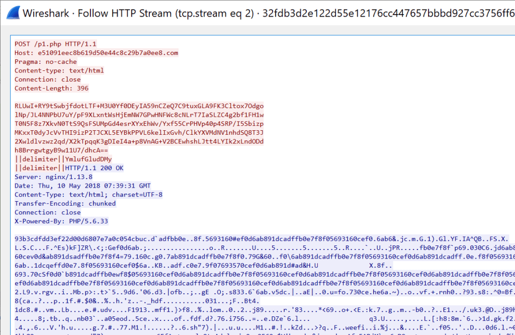Although this first request does not contain very thrilling information, if we are provided with only network traffic captures, it’s not possible to decrypt it without the RSA private key. This will have consequences soon as I will try to decrypt the server’s response of another similar malware sample.
