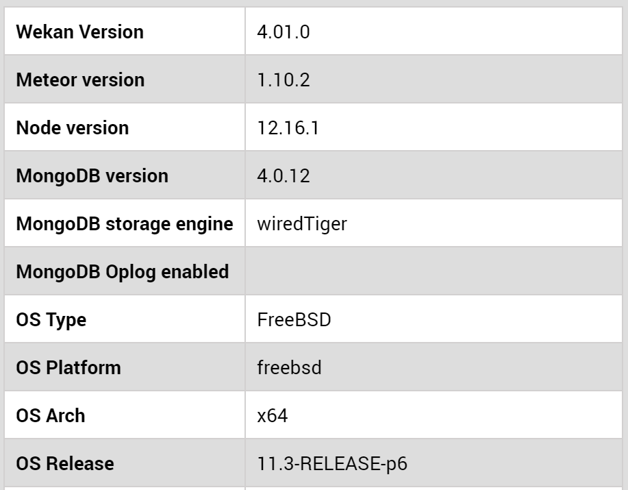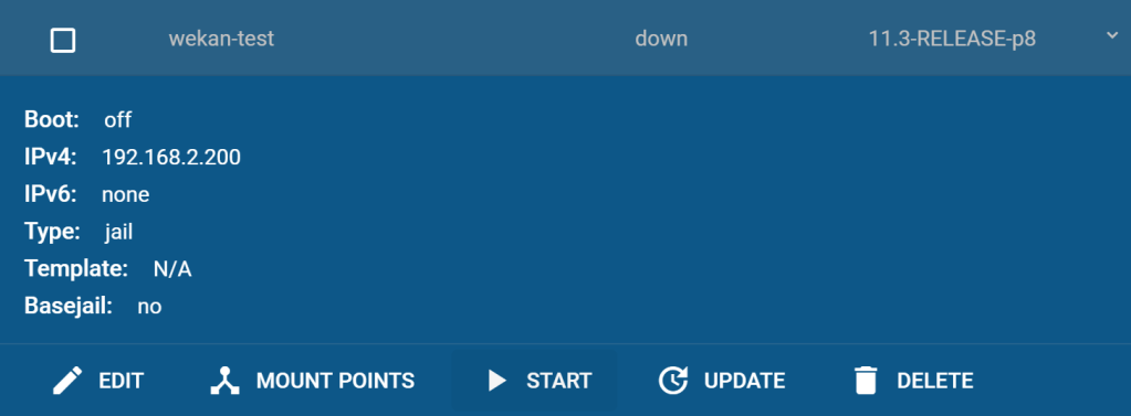 Once again, when you try to combine an unpopular app on an unpopular platform, and you want the latest version of them, the journey is long. Today, we want a FreeNAS 11.3 jail hosting Wekan 4.01, the Trello-like kanban-style board app, behind nginx 1.18.0 with OpenSSL 1.1.1g using TLS 1.3. You may want to do that if you don’t want to share your private boards with yet another cloud company and its likely ambiguous privacy policy.
