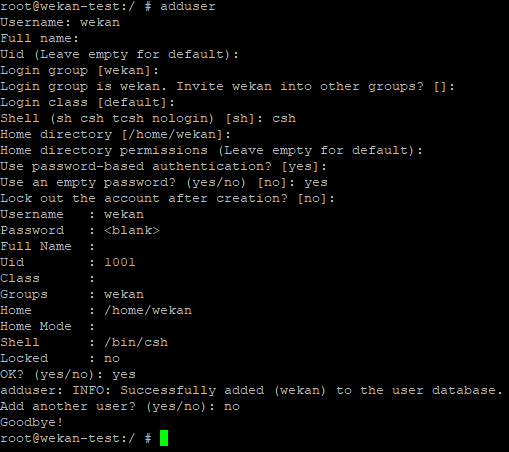 Next, we want to start Wekan as a service and use the config we just made. Exit from su wekan, then edit /usr/local/etc/rc.d/wekan.