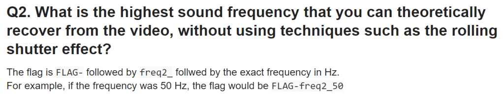 Therefore in our case, without the rolling shutter effect, we are bound by Shannon’s sampling theorem. At 2400 fps, we can recover all sounds that make objects move at less than 2400/2 = 1200 Hz.
