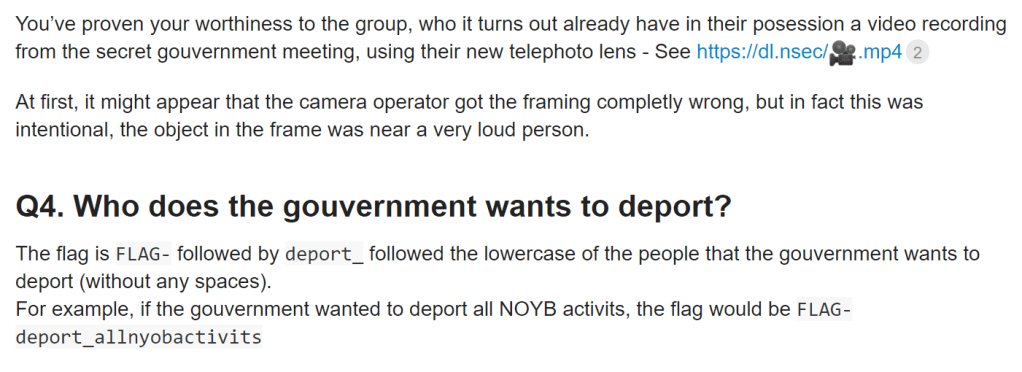 At NorthSec, I’ve been the captain of the X-Men team for several years. The team is primarily composed of Concordia University (Montreal, Canada) students, ex-students, and accointances. For this challenge, I worked with my girlfriend who persisted in trying various tools.