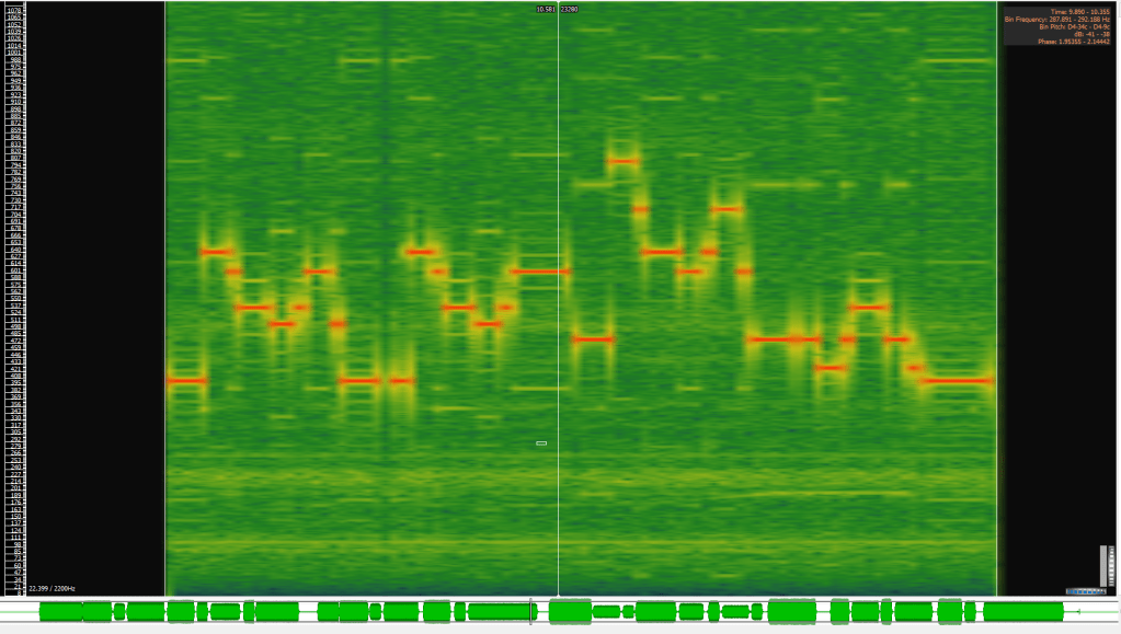 Six long minutes of intense CPU activity later, boom. Matlab error. Also, we got a spectrogram of the recovered sound, and it looks like we’ve got something!