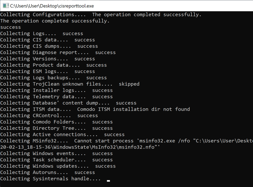 The problem did not seem straightforward, so I was asked to run CisReportTool (https://cdn.download.comodo.com/cis/download/installs/cisreporttool/cisreporttool.exe) to generate a report about my system and Comodo’s configuration.