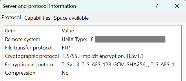 A typical modern FTP over implicit TLS connection starts with an exchange like this one: