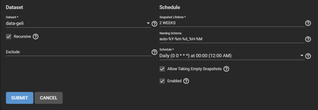 - Select the newly created entry under Periodic Snapshot Tasks.