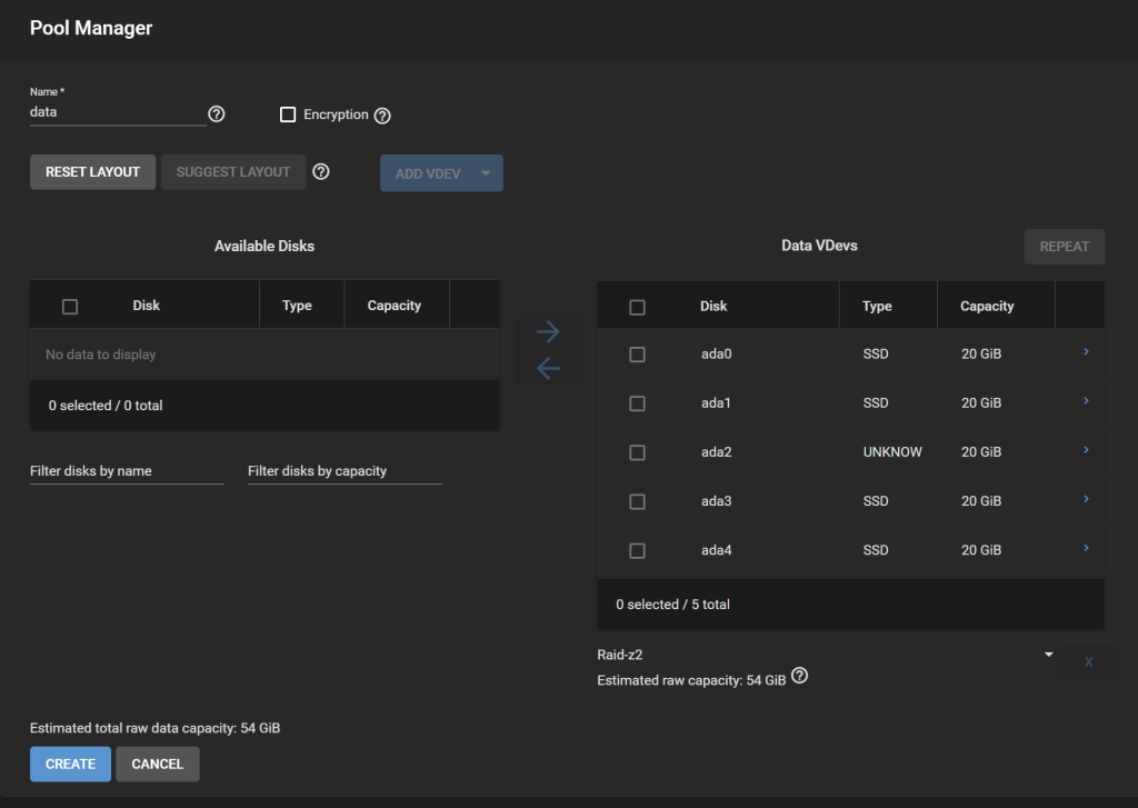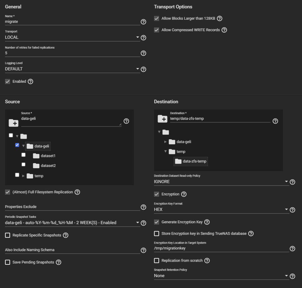 Not only that, but if you actually care about not leaking your encryption keys, TrueNAS does not adequately warn you of the consequences of your choices. In making this tutorial, I attempted migration via several routes, some stored my encryption keys in an unencrypted database, while others didn’t. Some of this is due to how TrueNAS approaches ZFS encryption, so you need to become familiar with these assumptions as well.