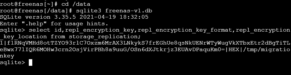 We can verify that the encryption key/passphrase for the replication task is indeed written to disk. After creating the task in Step 5 in Method #1, run from a shell: